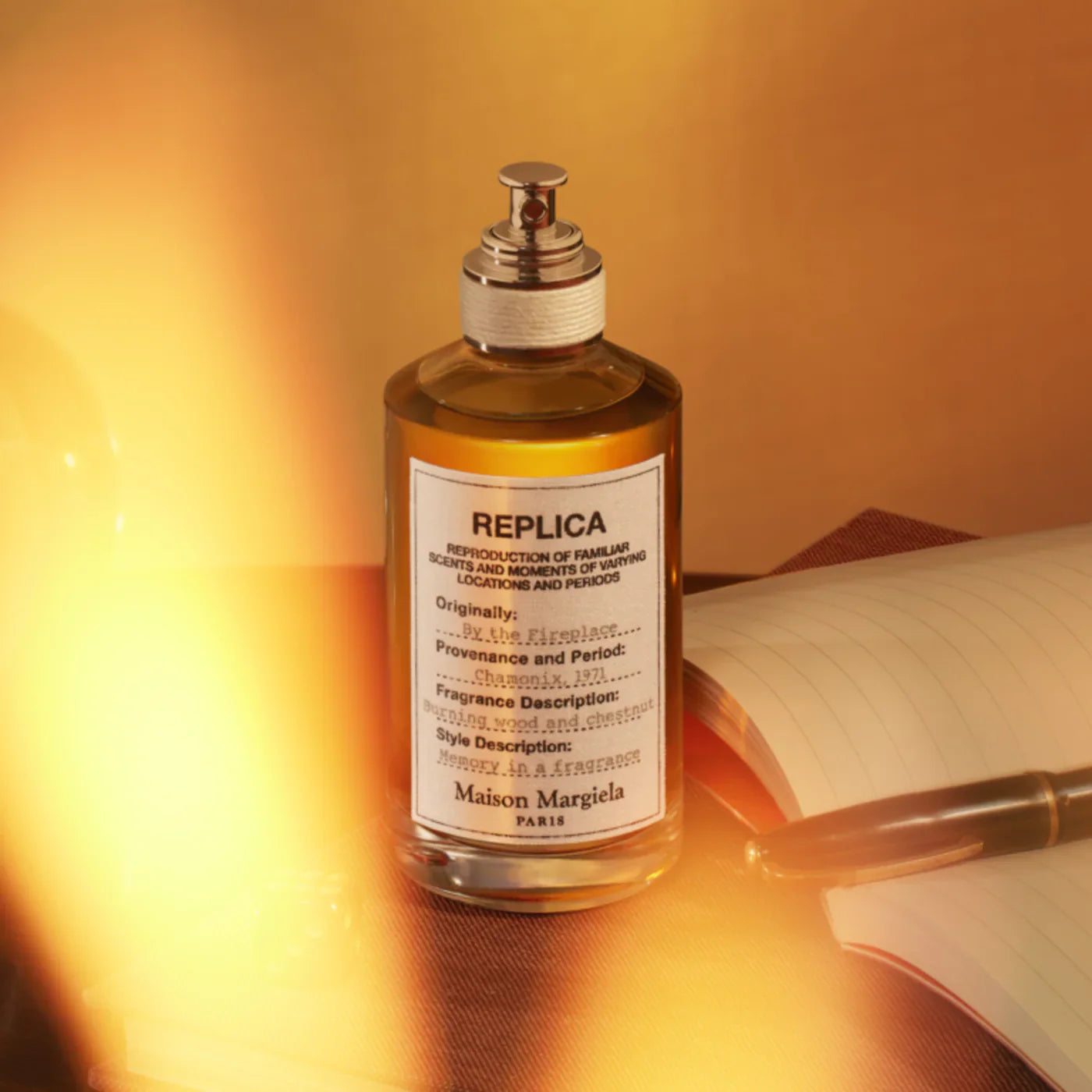 Housed in the signature minimalist REPLICA bottle, this fragrance reflects both elegance and the nostalgic, intimate charm of a comforting fire.